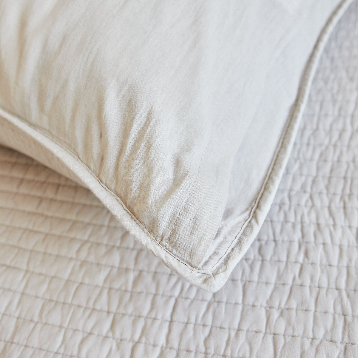 Funda decorativa tipo sham confeccionada en 100% algodón. Diseño matelassé de color liso con bordado al tono de hilo, que suma textura y elegancia a la cama.