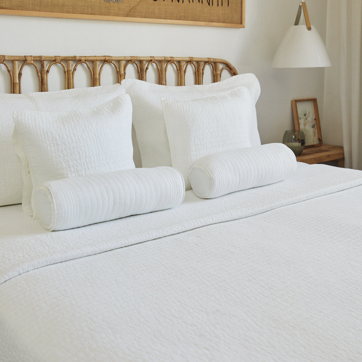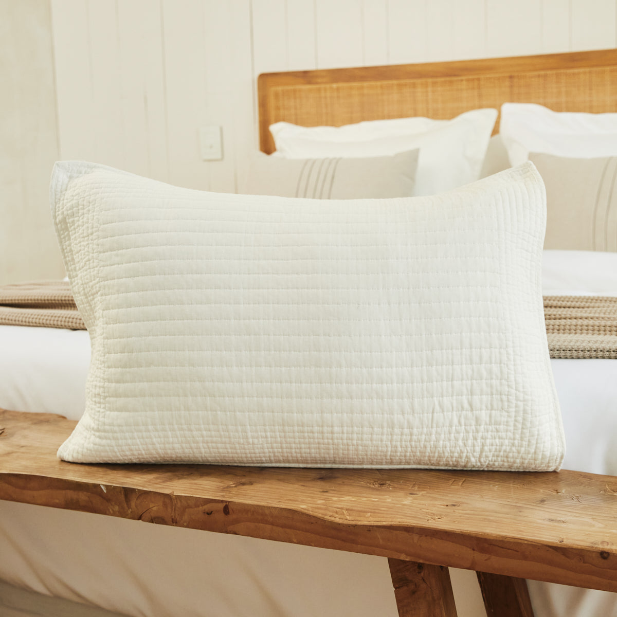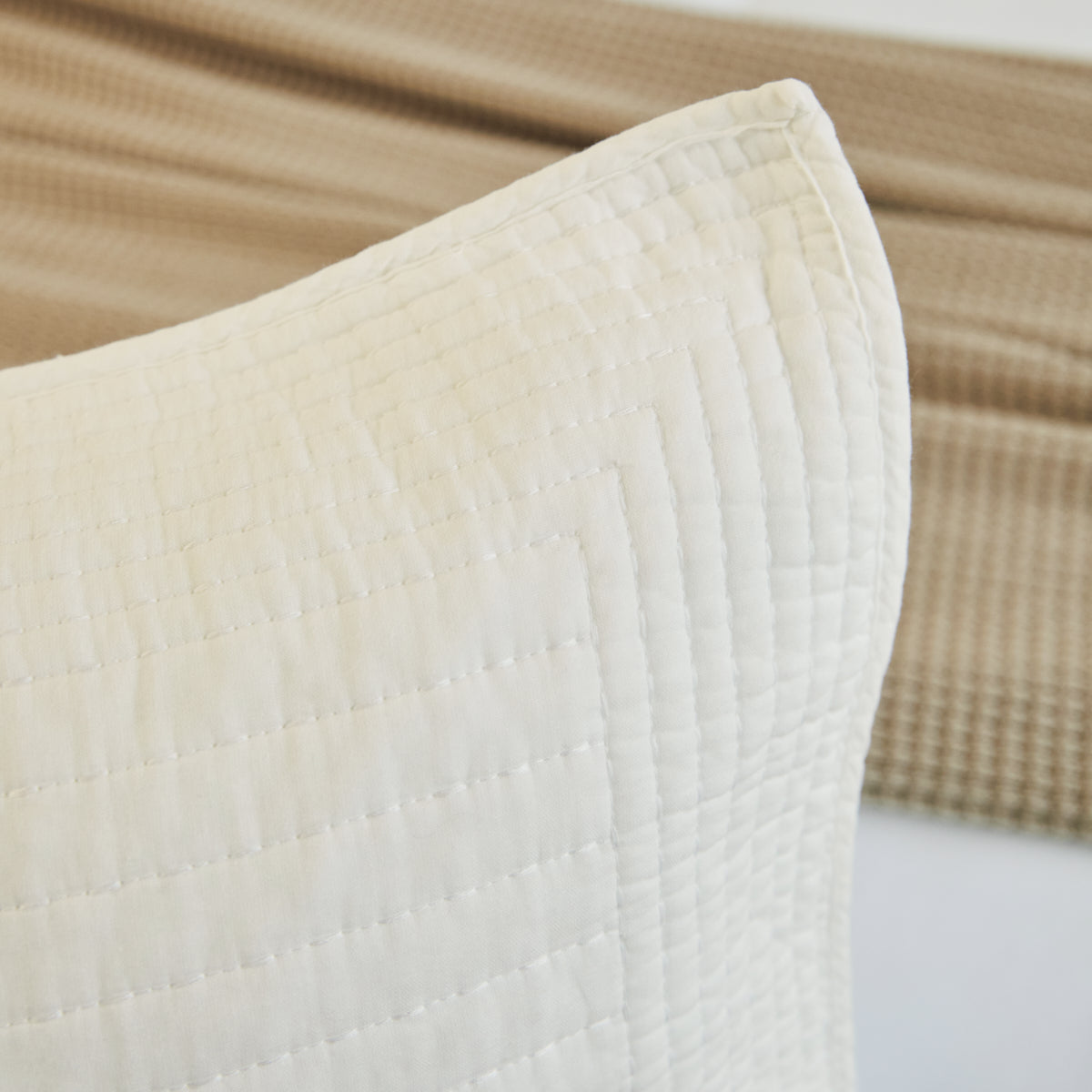 Funda decorativa tipo sham confeccionada en 100% algodón. Diseño matelassé de color liso con bordado al tono de hilo, que suma textura y elegancia a la cama.