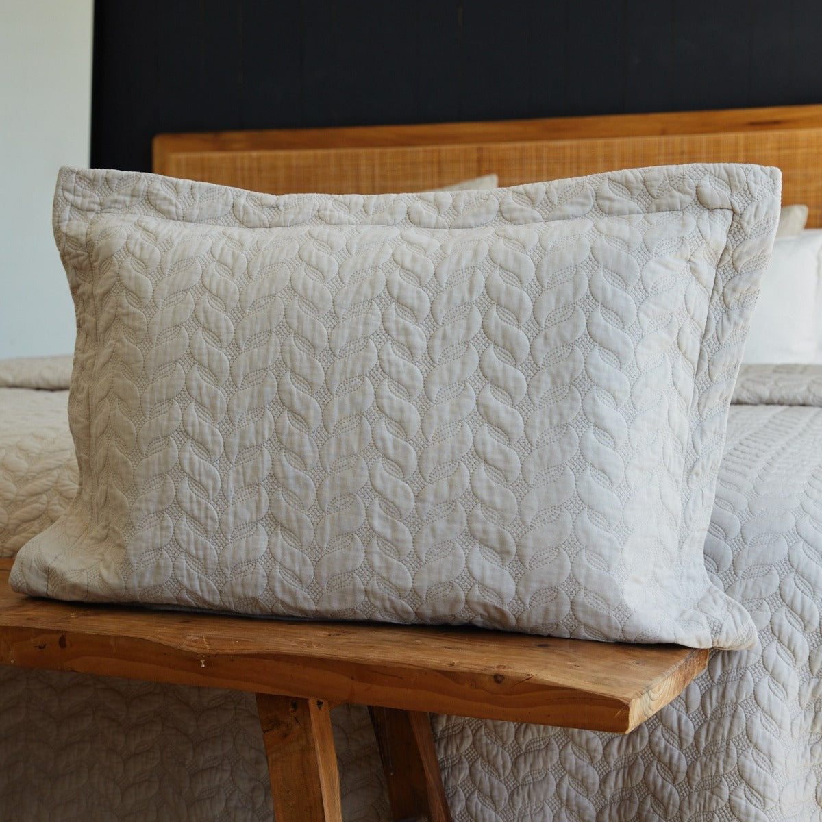 Funda decorativa tipo sham confeccionada en 100% algodón. Diseño de color liso con bordado al tono de hilo, ideal para aportar textura y elegancia a la cama.